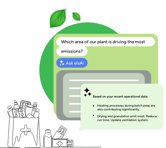 elsAi ESG uses Generative AI to analyze historical and real-time ESG data across pharmaceutical manufacturing. It identifies opportunities to reduce energy use, improve waste management, enhance safety, and suggest site-specific ESG targets. These AI-driven insights support proactive planning, cost savings, and improved compliance.